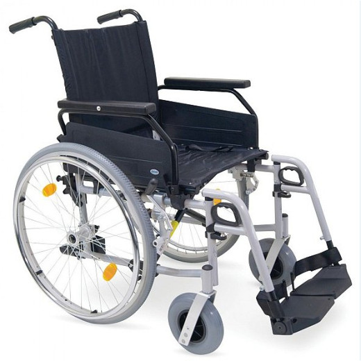 Standardni invalidski voziček ima sistem za hitro snemanje zadnjih koles.