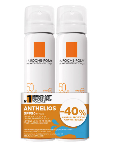 La Roche-Posay, ANTHELIOS SPF50+ Nevidna meglica za obraz proti mastnemu lesku, 2x75ml